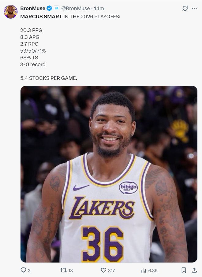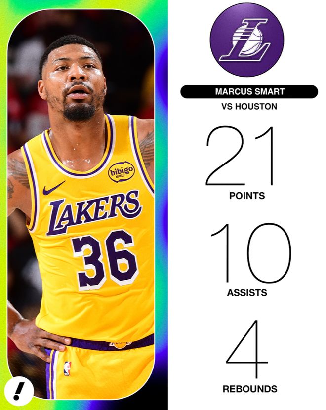 这场比赛湖人的赢球海报中心是马库斯-斯玛特,没错,又是缸哥,他上一场就是赢球第一功臣,他在末节与加时赛的表现实在是太出色了。
