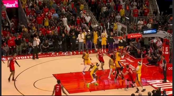时间回到比赛第四节最后两分钟,当看到火箭反超湖人的那一刻,