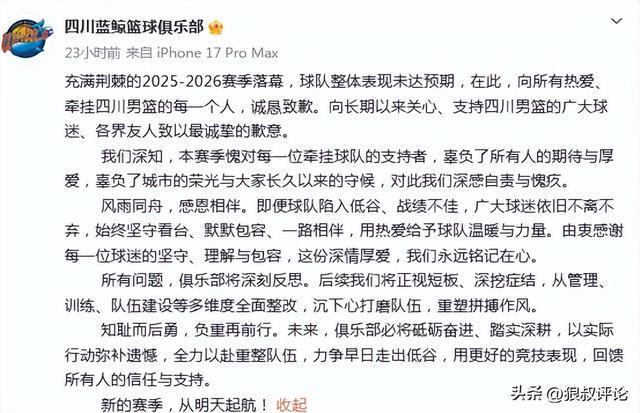 作为一支拿到过总冠军的球队,四川男篮过去几个赛季深受财务危机带来的各种负面影响,甚至遭到一些外援上诉讨薪。