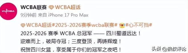 WCBA联赛官方社媒送出祝贺: