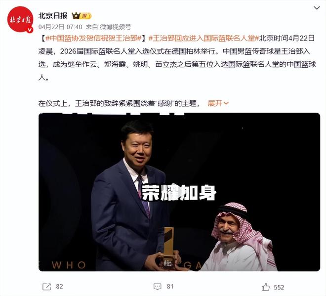 毕竟这份荣誉不止是对王治郅的认可,更是对中国篮球的认可。