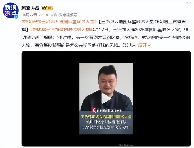 如今,王治郅登顶国际篮联名人堂。
