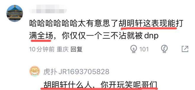 作为广东队本赛季的重磅引援,崔永熙在这场比赛发挥出色,上半场就拿到10分,结果全场比赛打下来,他一共才拿到13分,虽然投出一个三不沾,但整体表现仍然完胜胡明轩,杜锋对于他俩的区别对待,也引起了球迷的热议:“太有意思了,胡明轩这表现能打满全场,崔仅仅一个三不沾就被DNP。”