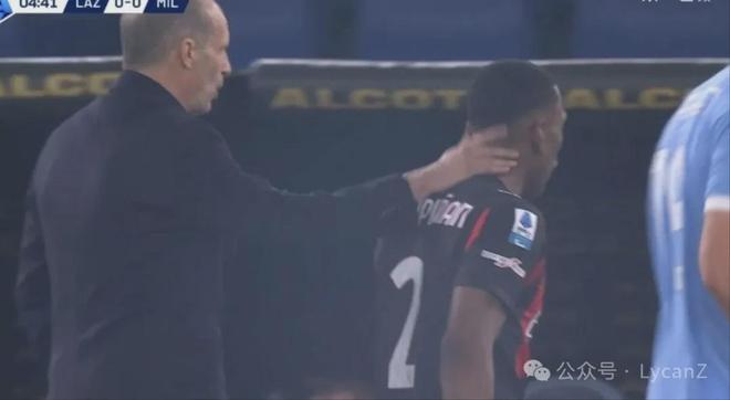 然后就是本场的名场面了(上一次在比赛期间爆发将帅矛盾貌似还是“补水事件”,对手依旧是拉齐奥,主角依然有莱奥):阿莱格里选择换下莱奥,麦尼昂跨越半场过来安抚,莱奥对主帅的拥抱表现出明显抵触。