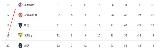 尽管换帅后一度回暖,但整体积分依然危险。更致命的是赛程压力:罗马、尤文、亚特兰大接连登场,每一场都可能成为“生死判决”。另外,在意甲历史上,几乎没有球队能在如此糟糕的开局下成功保级。佛罗伦萨目前积32分,仅仅比降级区高出5分,紫百合正在挑战一个极其残酷的概率。