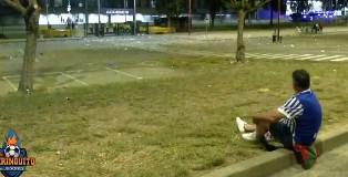 令人动容,一名没票的皇社球迷坐在球场外听国王杯决赛陪伴主队