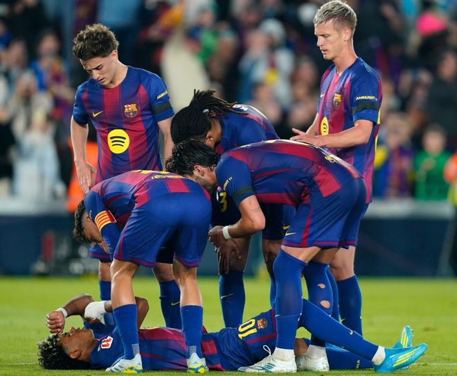 就在这样的争冠收尾关键时刻,巴萨头号球星亚马尔的赛季报销,让皇马看到了争冠的希望。亚马尔在巴萨与塞尔塔的比赛中受伤下场。他的左腿股二头肌受伤。股二头肌位于腿部后侧,和半腱肌和半膜肌共同构成腘绳肌群。这是一个较为敏感的区域,在重新开始训练时存在一段比较高的脆弱期,有可能再次复发。根据著名医生里波尔的说法,股二头肌受伤有30%的复发风险。