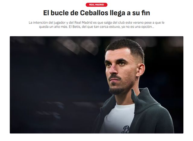 《阿斯报》报道称,塞巴略斯的皇马生涯,即将画上句号。